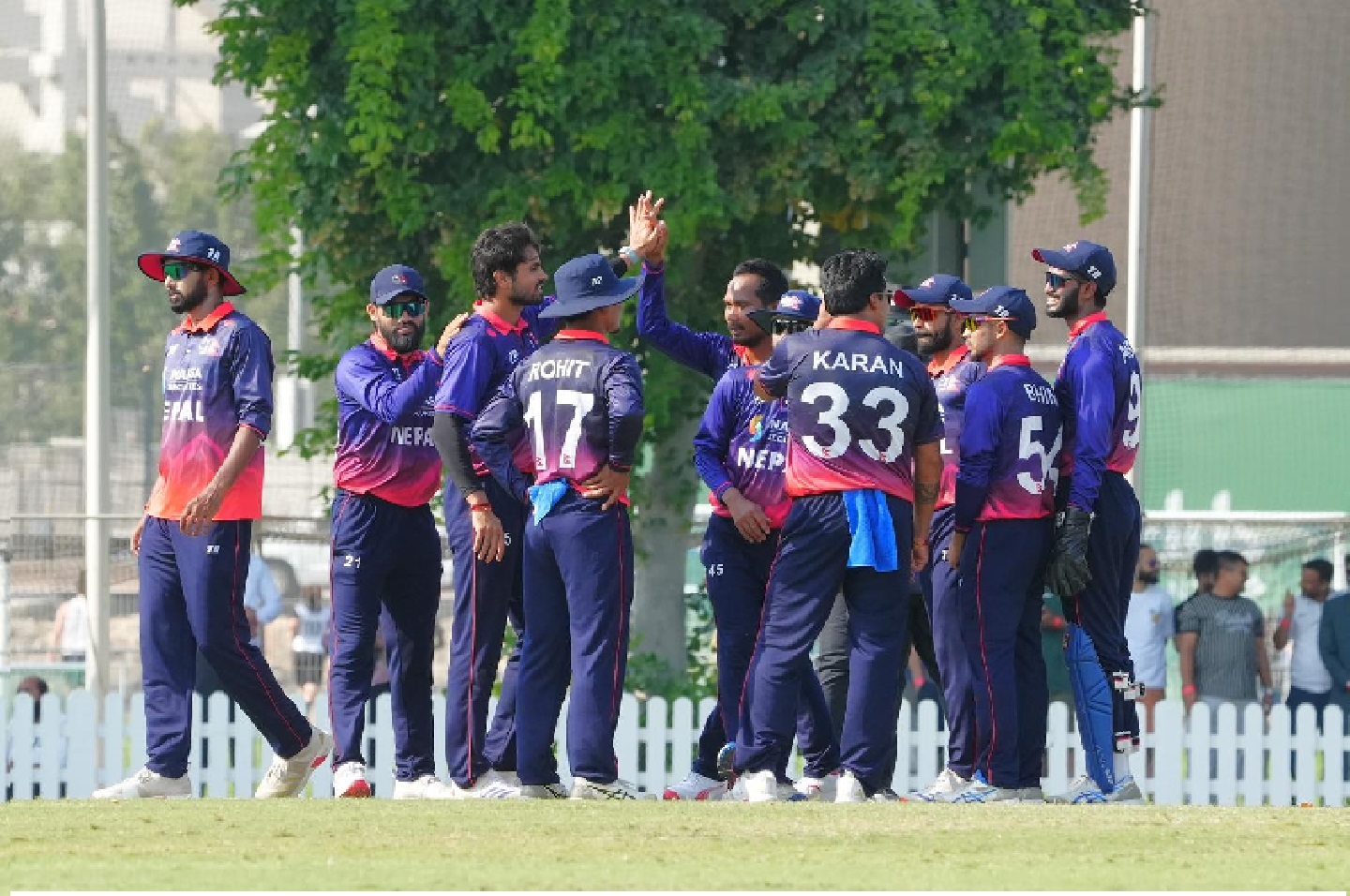 त्यस्तै कुशल भुर्तेलले ४७, भीम सार्कीले ४३, कप्तान रोहित पौडेलले ३६ रन बनाए ।