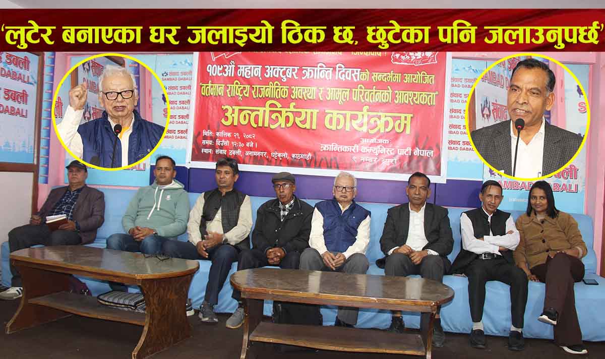काठमाडौं । जेन्जी बिद्रोहबाट पाठ सिक्दै नेपालका कम्युनिस्टहरुले वर्तमान संसदीय व्यवस्थालाई विस्थापनको तयारी गर्नुपर्नेमा वक्ताहरुले जोड दिएक छन् । शक्रबार राजधानीको संवाद डबलीमा क्रान्तिकारी कम्युनिस्ट पार्टी नौ नम्बर ब्युरोले आयोजना गरेको अन्तरक्रियामा सबै कम्युनिस्ट एक नभए देश युक्रेन बन्नेसमेत चेतावनी दिएका छन् ।