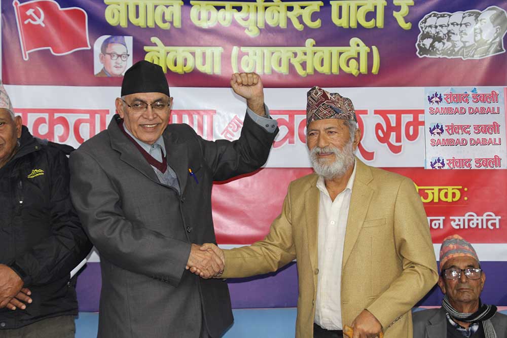 काठमाडौं । नेपाल कम्युनिष्ट पार्टी र नेपाल कम्युनिष्ट पार्टी (मार्कसवादी)बीच पार्टी एकता भएको छ । मंगलबार राजधानीको संवाद डबलीमा आयोजित एकता घोषणा कार्यक्रममा नेताहरुले देश गम्भीर संकटमा गएको भन्दै क्रान्तिकारी कम्युनिस्टहरुबीच धुर्विकरण गरेर देशलाई निकास दिने उद्घोष गरेका छन् ।