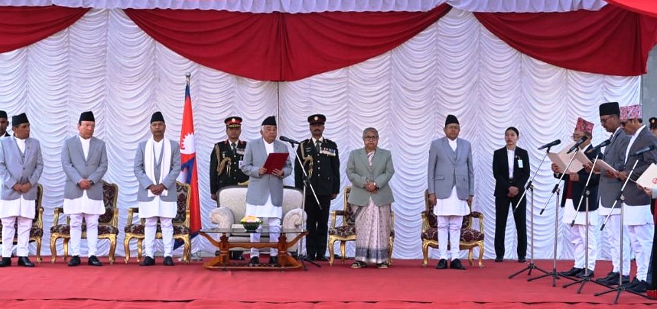 राष्ट्रपतिले शितल निवासमा नवनियुक्त मन्त्रीहरूलाई पौडेलले शपथ समेत गराएका छन् ।