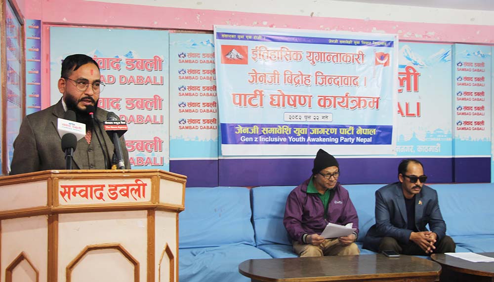 मंगलबार संवाद डबलीमा पत्रकार सम्मेलनको आयोजना गरेर जेनजी युवा जागरण पार्टीले राजनीतिक, सामाजिक र आर्थिक समस्याविरुद्ध नयाँ वैकल्पिक राजनीतिक अभियान अघि बढाउने घोषणा गरेको छ ।