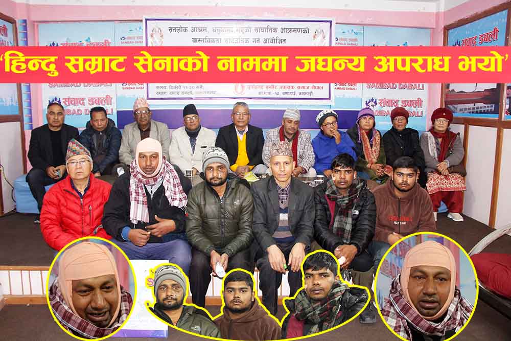 काठमाडौं । धनुषा स्थित सतलोक आश्रममा धार्मीक सहिष्णुता बिथोल्न सुनियोजित सांघातिक आक्रमण भएको ‘पूर्णब्रह्म कबीर उपासक समाज, नेपाल’ले आरोप लगाएको छ । शनिबार राजधानीको काठमाडौं स्थित संवाद डबलीमा समाजले पत्रकार सम्मेलन गरी घटनामा सम्लग्न दोषीहरुउपर कडा कारवाहीको समेत माग गरेको छ ।