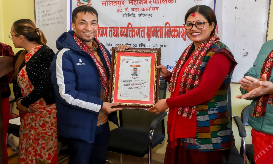 ललितपुर महानगरपालिका २९ वडाले आफ्नो वडाका विभिन्न महिला समूहका पदाधिकारी तथा सदस्यहरुको क्षमता अभिबृद्धि गर्ने उद्देश्यले आयोजना गरेको उद्घोषण तथा ब्यक्तिगत क्षमता अभिबृद्धि तालिम सम्पन्न भएको छ । तालिमको समापन समारोहका प्रमुख अतिथि महिला सदस्य मनमाया महर्जनले प्रशिक्षार्थीहरुलाई प्रमाणपत्र वितरण गर्नुहुँदै “सबैको क्षमता अभिबृद्धि भएको प्रत्यक्ष देख्न पाउँदा आफूलाई निकै हर्ष लागेको” उल्लेख गर्नुभयो । कार्यक्रममा प्रशिक्षक सुरजवीर बज्राचार्यलाई दोसल्ला ओढाई, मायाको चिना तथा सम्मान पत्र प्रदान गरिएको थियो । प्रशिक्षक बज्राचार्यले अब समूह र समुदायमा गएर कार्यक्रमको आयोजना, सञ्चालन एवं प्रभावकारी ब्यवस्थापनमा सहजता आउने आशा गर्नुभयो । “प्राप्त हुने कुनै पनि मौका छाड्नु हुन्न” भन्नु हुँदै उहाँले प्रत्येक मौकाको सदुपयोगका लागि प्रशिक्षकको जिम्मेवारी निर्वाहमा निरन्तरता रहने प्रतिवद्धता ब्यक्त गर्नुभयो ।