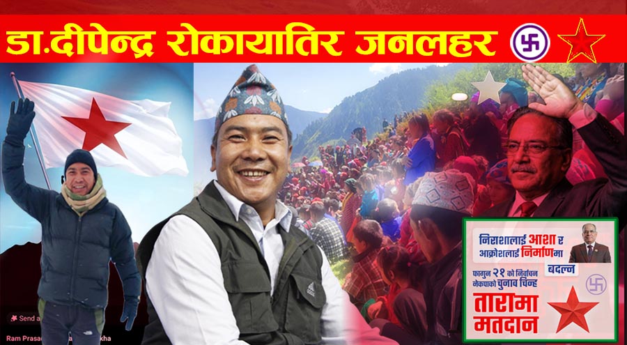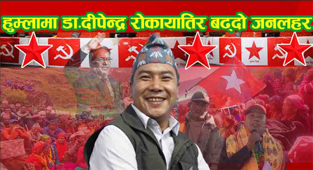 सिमकोट । अहिले हुम्लामा नेपाली कम्युनिष्ट पार्टी(नेकपा) उम्मेदवार डा. दीपेन्द्र रोकायाको चर्चा घर घरमा हुन थालेको छ । जिल्लाभरी नेकपाको पक्षमा जनलहरले उनको जित निश्चित भएको नेकपा कार्यकर्ताहरुको दाबी छ ।