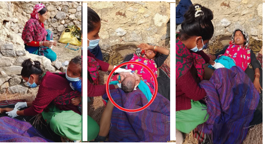 स्थानीयको सहयोग र स्वास्थ्यकर्मी रोकायाको सक्रियतामा सुत्केरी महिला भण्डारीको सुरक्षित रूपमा प्रसूति गराइएको हो । स्वास्थ्यकर्मी रोकायाले आवश्यक सावधानी अपनाउँदै बाटो छेउमा रहेको गाई गोठ नजिकै सुरक्षित रूपमा बच्चा जन्माउन सहयोग गरेकी थिइन् ।