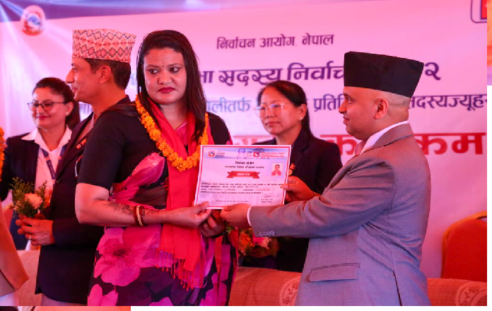 बिहीबार आयोगमा आयोजित विशेष समारोहकाबीच आयोगका प्रमुख आयुक्त रामप्रसाद भण्डारीले समानुपातिकतर्फका सांसदहरुलाई प्रमाणपत्र प्रदान गरेका हुन् ।