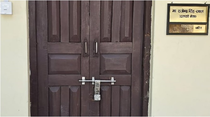 धनगढी । नेकपा एमाले सुदूरपश्चिम संसदीय दलका नेता राजेन्द्रसिंह रावलको कार्यकक्षमा युवा संघ नेपालले तालाबन्दी गरेको छ । सुदूरपश्चिम प्रदेश सरकारले अस्पताल व्यवस्थापन समितिमा गरेको नियुक्तिमा रावलले पार्टीमा परामर्श नगरेको भन्दै युवा संघले तालावन्दि गरेको हो ।