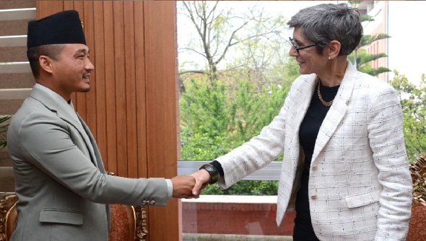 काठमाडौं । गृहमन्त्री सुधन गुरुङ र नेपालका लागि स्वीट्जरल्यान्डका राजदूत डा.ड्यानियल म्युलीबिच भेटवार्ता भएको छ । गृहमन्त्री गुरुङ र म्युलीबिच बुधबार भेटवाता भएको हो ।