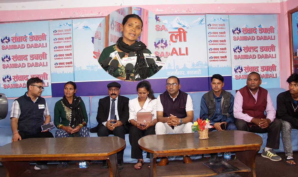 काठमाडौं । सिन्धुलीको खुर्कोटस्थित इलाका प्रहरी कार्यालयको हिरासतमा ७ वैशाखमा ज्यान गुमाएका श्रीकृष्ण विश्वकर्माकी आमा बिन्दमाया विश्वकर्माले आफूले न्याय नपाउन्जेल छोराको लास नबुझ्ने बताएकी छन् । बुधबार राजधानीको संवाद डबलीमा आयोजित पत्रकार सम्मेलनमा उनले यस्तो बनाएकी हुन् ।
