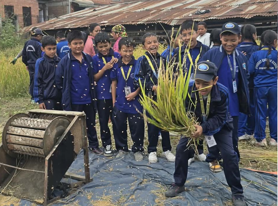 एभरेस्ट स्कुलका नानीबाबुहरुलाई धान भित्राउने चटारो